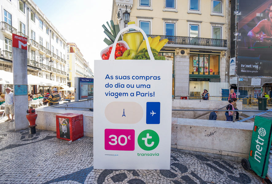 Eis a questão: as suas compras do dia ou uma escapadinha de baixo custo a Paris ou Amesterdão? A B+ respondeu e, numa ação de rua para a Transavia, sacos de grande formato invadiram os centros do Porto e Lisboa. Nas estações de metro, semáforos e supermercados foram distribuídos mais de 20.000 sacos para quem precisa de asas até para ir às compras.