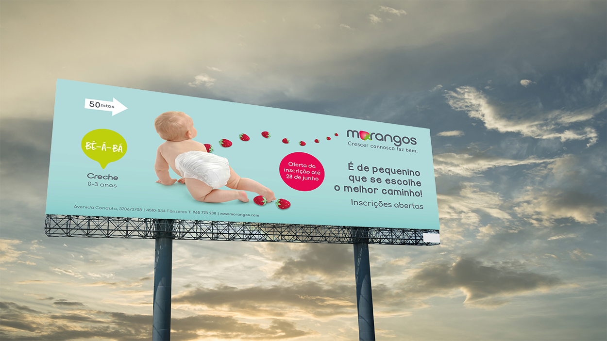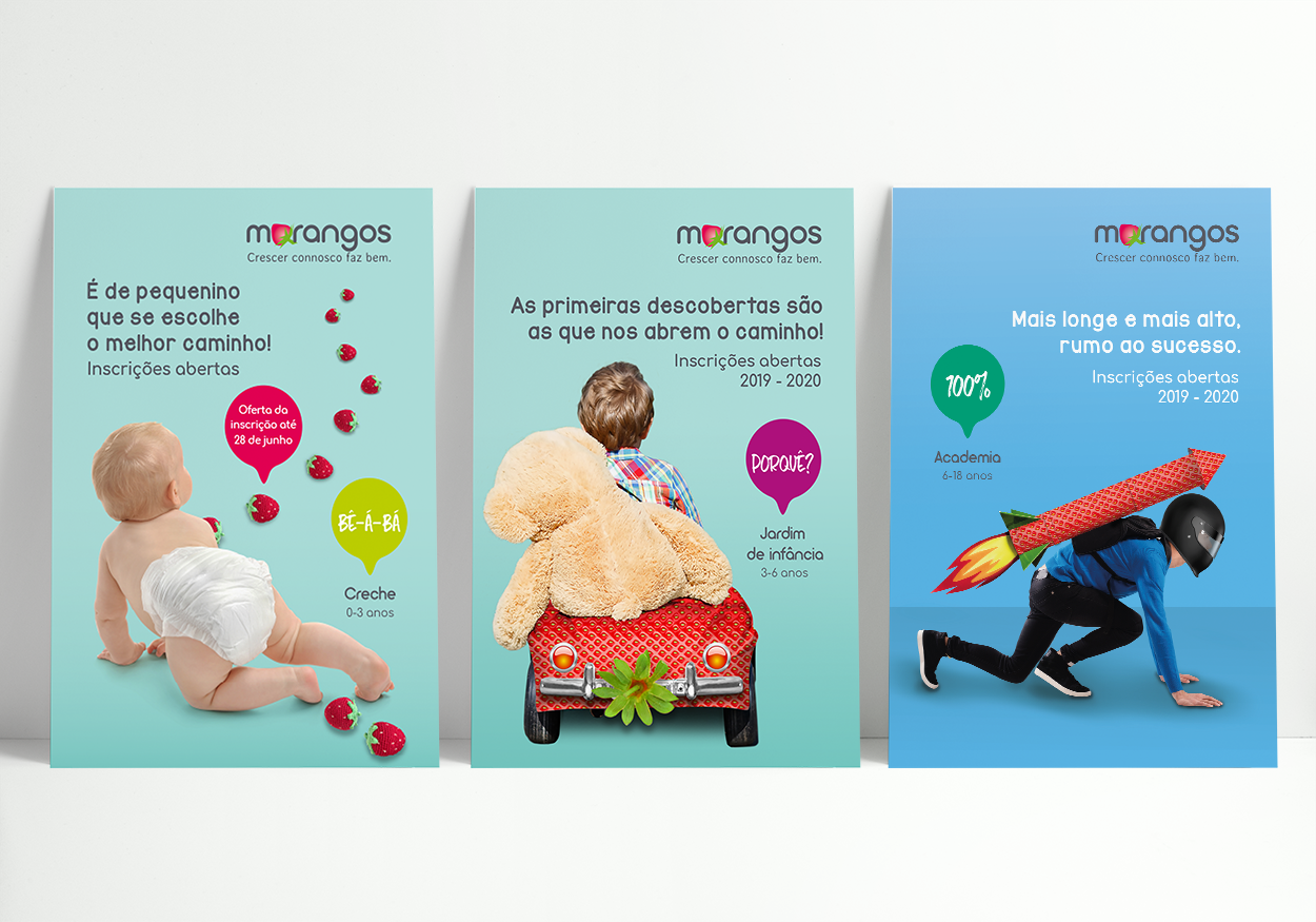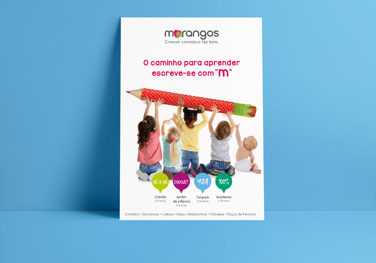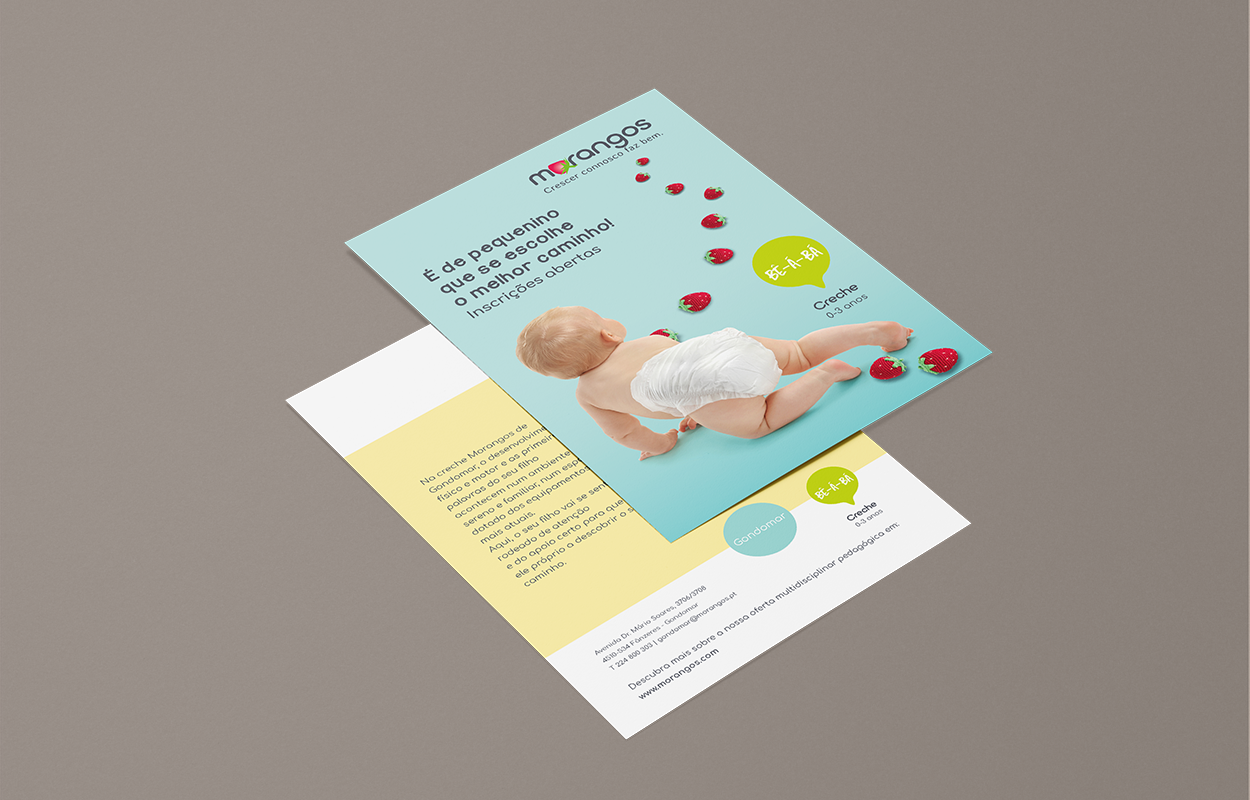 O projeto educativo Morangos lançou o desafio e a b+ respondeu. Estas são algumas peças de comunicação com a nossa criatividade, das quais se destacam uma campanha nos meios digitais e flyers para as várias valências Morangos.