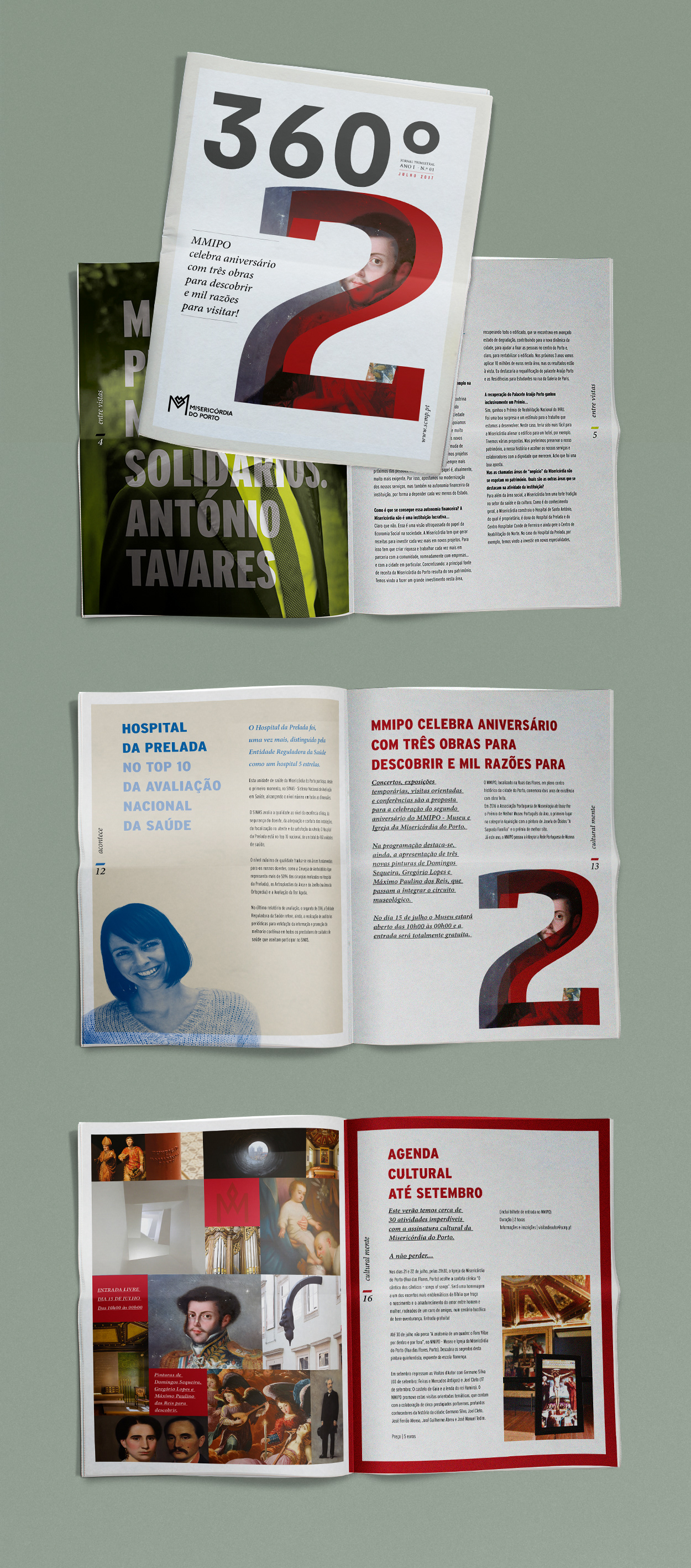 O 360˚ é um projeto de informação da Santa Casa da Misericórdia do Porto, com edição trimestral. O jornal, dirigido a público externo à instituição, tem naming e layout b+.